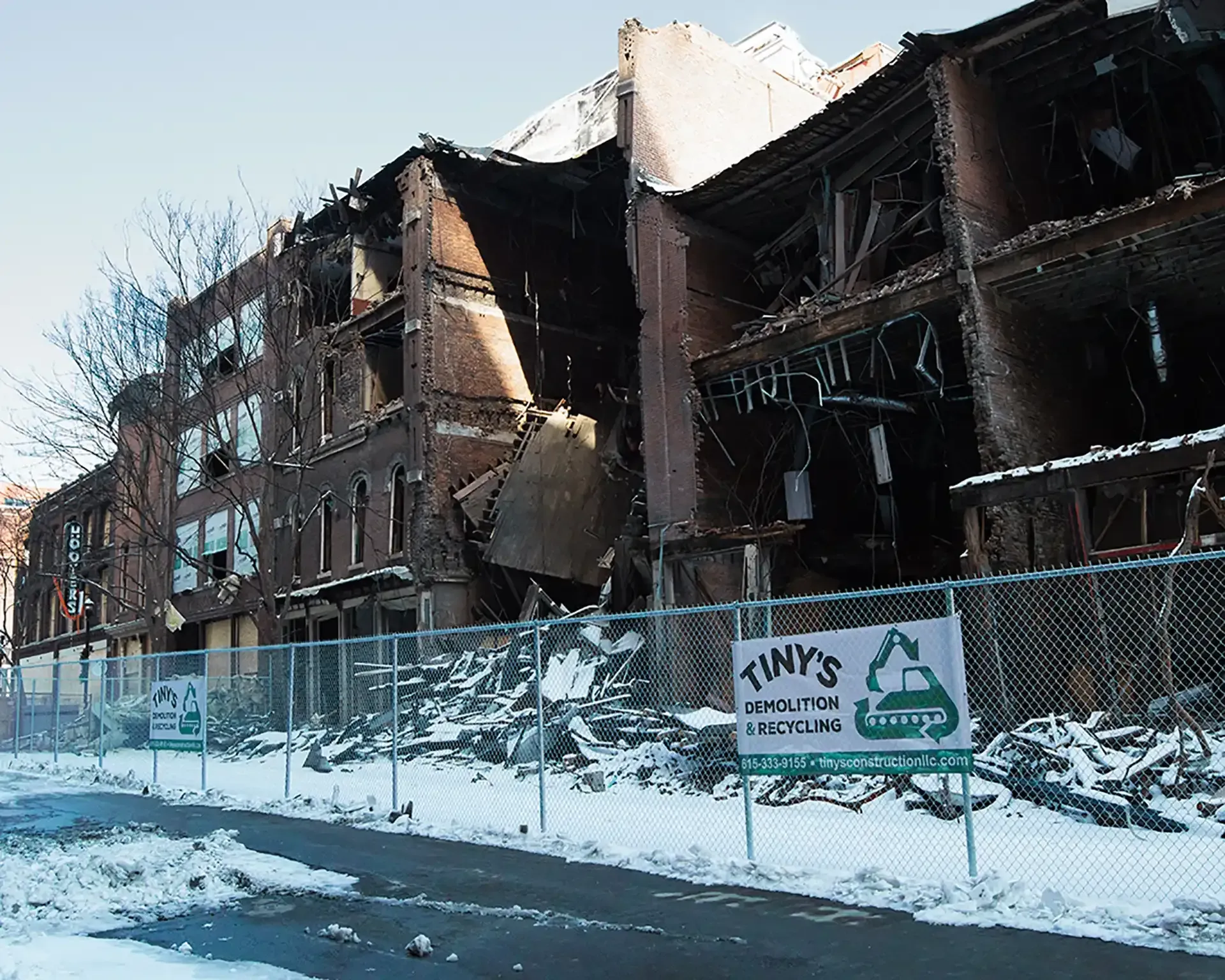 Tiny’s Demolition & Recycling is proud to have had a helping hand in the disaster relief efforts for several of the buildings that were impacted by the explosion. Our crews helped clean up the wreckage, assisted in residences recovering any assets that remained, and deconstructing what was left of the buildings. Tiny’s Demolition & Recycling was able to recover as many bricks and materials as possible in efforts to restore the famous historic district.